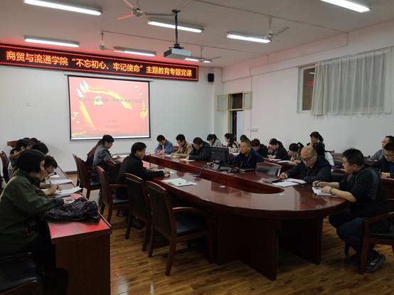 我院“不忘初心,牢记使命”主题教育开展以来,商贸与流通学院高站位谋划,高标准组织,高要求实施。充分运用自学、集中学习、交流研讨、典型教育、专题党课等形式,把学懂弄通做实习近平新时代中国特色社会主义思想作为重中之重,贯穿全过程,确保主题教育扎实推进。