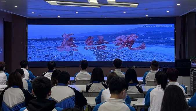 影片放映前,支部书记万永亮向同学们讲述了故事发生的时间背景,要求同学们围绕“服从、牺牲、英雄、价值”等关键词,带着思考去观影。两个小时中,同学们身临其境,随着镜头和剧情的发展切身体会着电影中人物的悲欢喜乐。观影结束后,所有同学用手卡记录当下的感受。