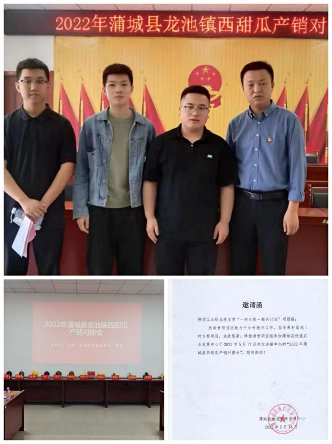 5月17日,2022年蒲城县西甜瓜产销对接会在蒲城县龙池镇召开,产销对接会由蒲城县设施农业发展中心举办。我校“一村N校·乡村振兴”师生党员创新创业团队作为全省唯一高职院校学生团队受邀参会。