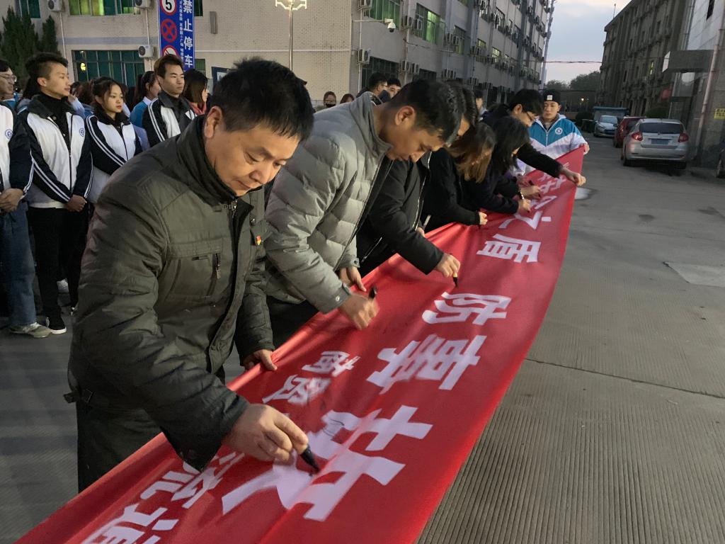 升旗仪式结束后,学工办主任成志平在国旗下进行讲话,他要求同学们牢固树立安全无小事、生命重于泰山的观念,呼吁同学们警惕冬季呼吸道传染病,注意饮食卫生安全,增强用火用电安全意识和交通安全意识,家校紧密联系,将安全意识转化为实际行动,共同创造舒适安全的校园环境。随后,物流管理1902班李晨曦作为学生代表在国旗下进行演讲,她号召同学们珍爱生命,为和谐平安校园的构建出一份力。最后,全体师生在“举安全之盾防事故之患”宣传横幅上签字承诺,共同表明校园安全从我做起的决心,积极构筑安全、温馨的和谐校园。