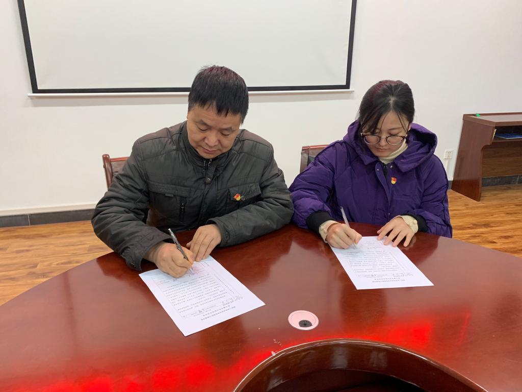 “我志愿成为一名高校辅导员,拥护党的领导,献身教育事业,恪守职业规范,提升专业素养,情系学生成长,做好良师益友。为培养社会主义合格建设者和可靠接班人而努力奋斗!”新进辅导员刘芬芬、岳攀进行了庄严宣誓。宣誓仪式后,新进辅导员刘芬芬、岳攀分别与指导老师冯秋玲、赵俊英共同签署“青年辅导员目标培养考评表”。