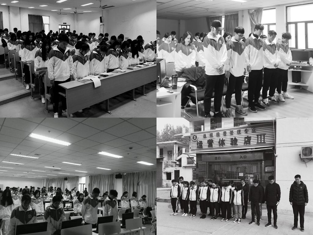 早上8点第一节课,商贸与流通学院的教室、实训室、实习场所,全体师生开展课前十分钟纪念活动。首先,上课老师带领学生默哀一分钟。教室里庄严肃穆,师生表情凝重,肃立、默哀,深切缅怀在南京大屠杀中无辜死难的同胞和革命先烈。默哀完毕,所有上课老师以“牢记历史、勿忘国耻、凝聚力量、奋力拼搏”为主题开展教学活动,为全体同学讲授南京大屠杀这一史实,国家公祭日设立意义。并告诉学生,今日之铭记,不为宣扬延续仇恨,而是要以史为鉴,唤起大家对和平的向往和坚守。今日之回顾,是想让大家明白落后就要挨打,发展才能自强的道理。希望同学们,在历史的痛感中练就过硬本领,砥砺前行,以实际行动为实现民族复兴而努力奋斗。