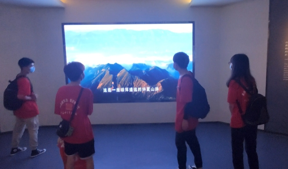 图为实践团成员在佛坪纪念馆里观看纪录片