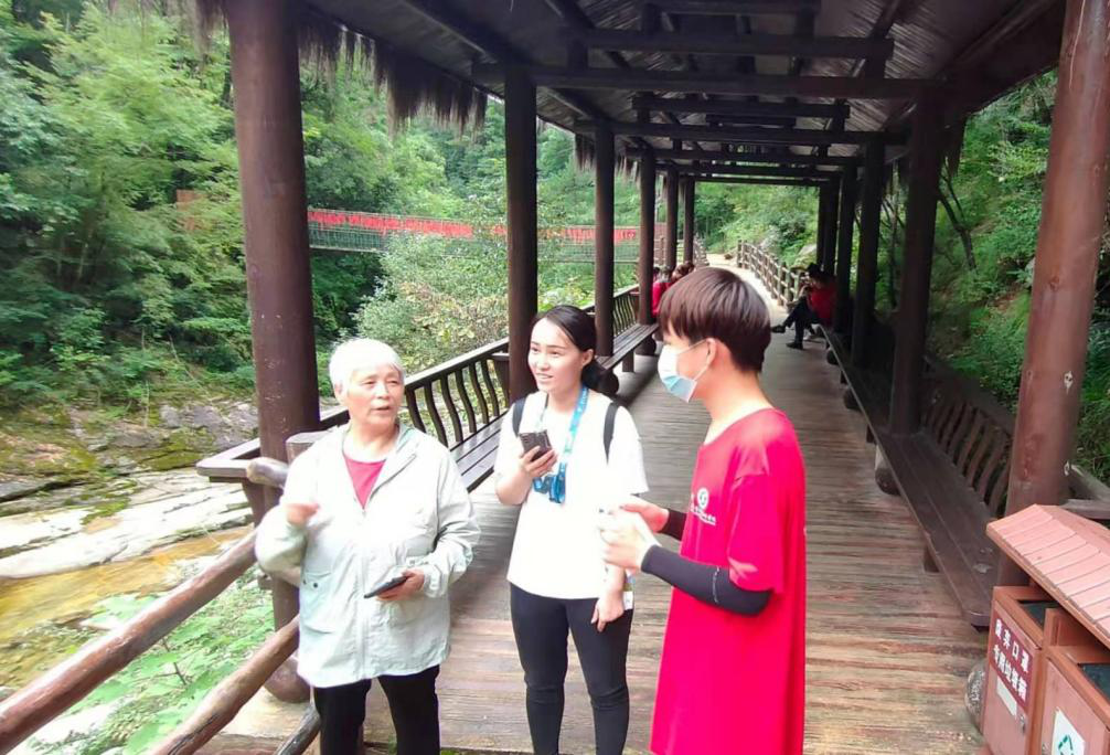 图为当日宣讲成员在熊猫谷向游客普及环保知识