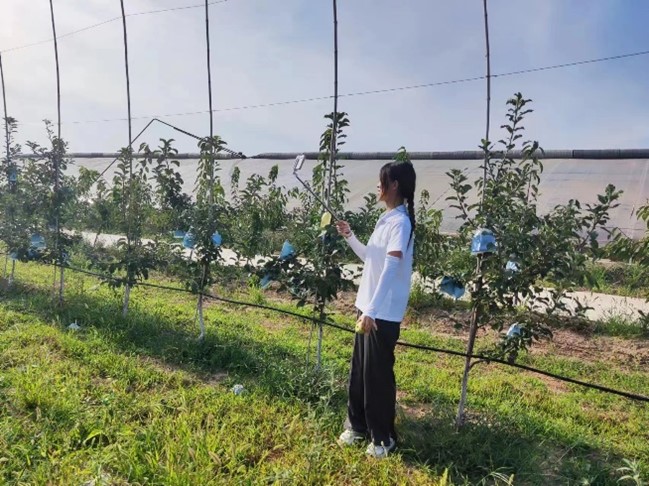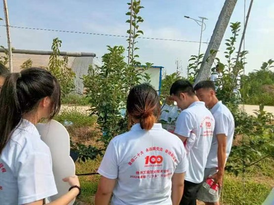 石桥镇寺村地形处于群山之间,自然条件较差。在基本熟悉寺村的环境和产业结构情况后,寺村村支部书记带领实践团队成员前往农业产业园区进行实地考察,在与村民交流中得知这是一处以种植苹果为主的现代农业产业园,现已培育发展“瑞雪”苹果40亩。