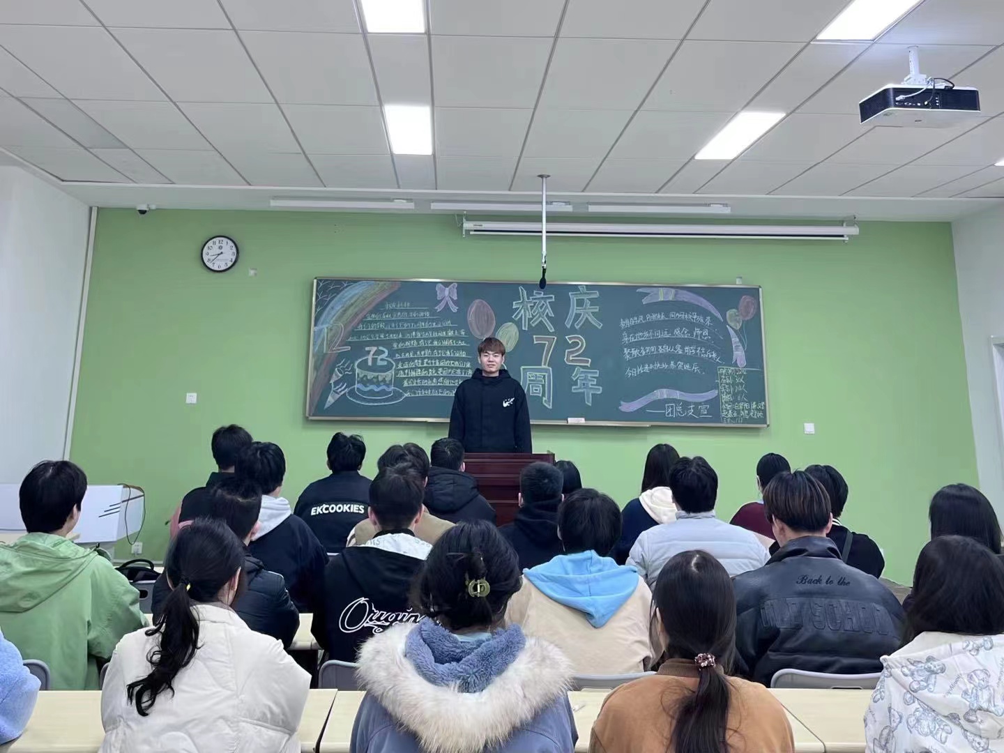 2022年11月15日,陕西工业职业技术学院迎来了建校72年的生日,为提升我院青年学生知校、爱校、荣校意识,商贸与流通学院团总支于11月15日晚在各班晚自习教室开展了“迎校庆创文明新校园”主题团日活动。
