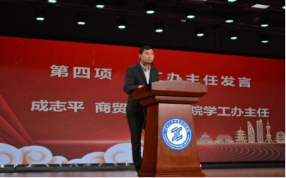 随后,商贸与流通学院学工办主任成志平老师发言,提出今年商贸与流通学院对专升本班的各项要求,并对专升本班的同学们提出了要求,要求专升本班同学对于学习有信心、能专心、持志恒心、要静心,希望同学们戒骄戒躁,严格要求自己。