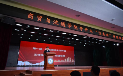 为扎实做好学院的专升本工作,引导同学们实现本科院校的愿望,5月11日下午,商贸与流通学院在图文信息中心图文报告厅二举行2021级专升本“达成”班开班仪式。学工办主任、辅导员代表、学生工作助理以及2021级专升本学生代表参加了此次活动。