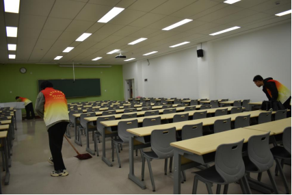本次打扫的地点主要是新校区崇理楼E楼。在活动过程中,同学们热情高涨积极主动,展现了商贸学子阳光向上、精神饱满的良好状态。清扫中,同学们在走廊侧道发现了卫生死角,侧道的地理位置总会因为风吹或者人为原因堆积起很多垃圾,于是同学们在侧道进行了集中的清扫活动,对大量的落叶和垃圾进行了处理,取得了较好的效果。