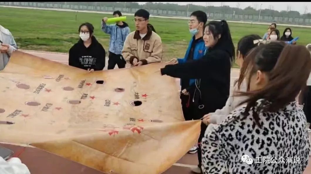 重走长征路:一个球放在布上,绕一圈只能在延安那个洞下去,用时最短的人获胜。