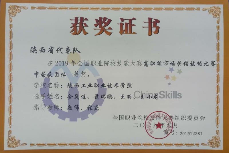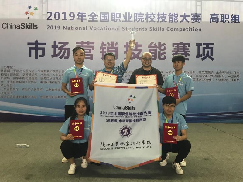 5月26日,2019年全国职业院校技能大赛高职组“市场营销技能”赛项在青岛酒店管理职业技术学院落下帷幕。本次比赛从5月25日开始,经过两天的激烈角逐,由我院物流管理学院颜伟、张庆老师指导,连锁经营管理1701班王小龙、市场营销1701班景瑞鹏、市场营销1602班王丽、市场营销1603班金岚佳4名同学组成的代表队斩获团体一等奖,实现了陕西省在该赛项中国赛一等奖零的突破。