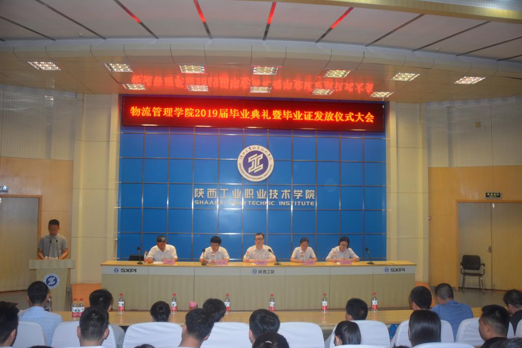 2019年7月2日上午10时,物流管理学院2019届毕业典礼暨毕业证发放仪式在学术会堂举办,物流管理学院院长李选芒、党总支书记田昊、副院长王永莲、教学办主任王红艳、学工办主任王尚宏、毕业生班主任及全体辅导员、毕业生代表、在校生代表近400人参加了毕业典礼。仪式由物流管理学院党总支书记田昊主持。