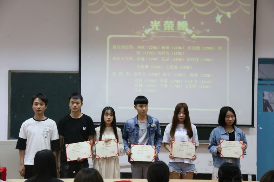 最佳人气奖:赵瑜(1704)苌晶(1706)侯佳佳(1706)马瑞娜(1701)王思成(1703)