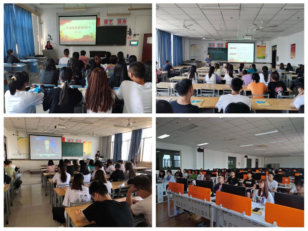 为进一步强化专业教师“课程思政”理念,实现全体教师、全课程、全课堂、全方位育人目标。9月3日第一节课,商贸学院全体教师利用课前十分钟时间以“铭记历史、珍爱和平”为主题给学生上了一堂爱国主义教育课。老师们带领学生回顾了1931到1945年那段烽火岁月,观看了反映1940年重庆大轰炸影像资料---《不能忘却的记忆》,使学生在真实的历史史料中体会战争的苦难和和平的珍贵,了解中国共产党在抗日战争中的中流砥柱作用。