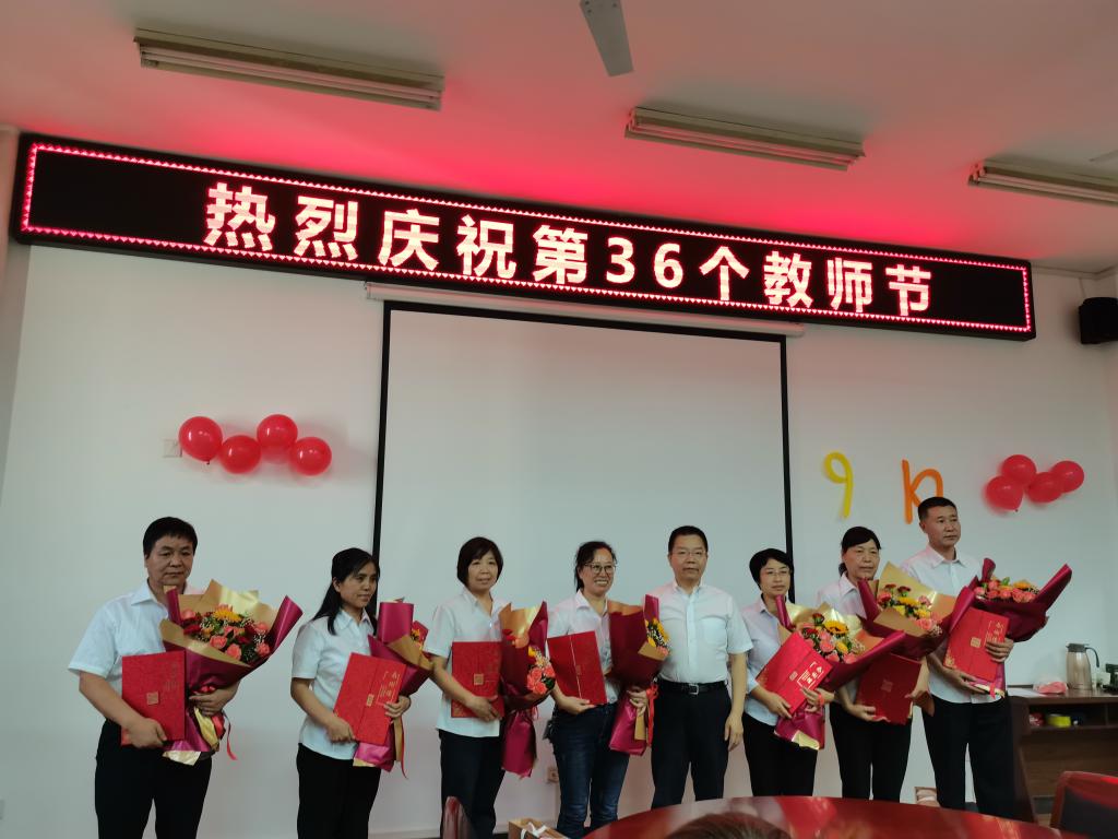 最后,惠朝阳同志发表了热情洋溢的讲话。他代表学院党政班子祝贺大家节日快乐。惠书记激动地说,自己参加工作35年了,今天来到商贸学院参加这次教师节庆祝会,使他感到了作为教师一种不一样的光荣和自豪。老教师几十年如一日,在教育教学一线勤勉耕耘,以对教师职业的执着、热爱,在日复一日、年复一年看似平淡的工作里,创造了不平凡的业绩。青年教师善于学习,青春朝气,是学院未来发展的后备力量。你们是陕西工院教师教书育人、甘于奉献的缩影和代表。拥有这样这一支忠诚、敬业、追求卓越的教师队伍是助推陕西工院砥砺奋进、高歌前行的底气和力量所在。最后,惠书记给大家客观分析了学院发展的形势和未来教师队伍的发展规划,号召大家继续坚守那份历久弥新的教育情怀,为学院的“双高”院校建设贡献智慧和力量。