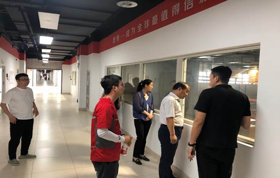 一行人在京东西北分公司人力资源经理白光泽、人事主管陈云鹏、电子商务教研室主任李海平的陪同下,分别检查了京东西北分公司万纬、京通、东盈、IDC和亚洲一号等五个园区,对学生的实习场地、住宿环境和饮食环境进行了全方位检查,并与企业导师、实习学生和我院现场指导教师进行了座谈,了解学生的实习感受和收获,听取了实习学生的工作心得和生活情况汇报。