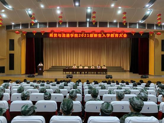 9月4日上午,商贸与流通学院在明德堂隆重举行2021级新生入学教育大会。商贸与流通学院院长王永莲、党总支书记陈昊平、党总支副书记王艳、学工办主任成志平、实训中心主任杨涛及全体教师、全体辅导员、新生班主任和2021级718名新生参会。大会由商贸学院副院长(兼教学办主任)张光主持。