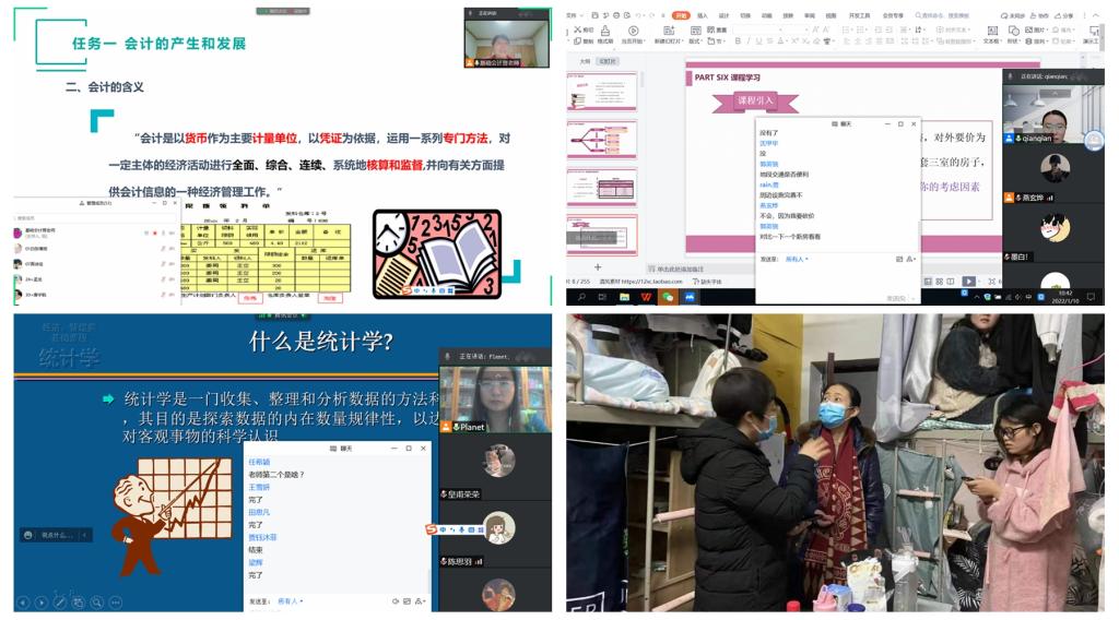 自查督导,保证教学有序进行。学校实施封闭式管理后,授课教师及时调整授课方式,在不断实践中,逐渐掌控线上腾讯会议的操作方式,保证线上授课高质量的推进。同时,商贸学院安排专人每日检查、督导线上教学,干部深入学生宿舍调研教师授课情况,辅导员时刻关注学生线上学习情况,及时收集学生们的意见和建议并予以反馈。