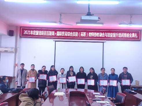 3月2日,2021年度国家级师资培训互联网+国际贸易综合技能培训班结业典礼在商贸流通学院5楼会议室举行,商贸与流通学院副院长张光,培训教师王粉萍、王霄、程天一及全体国培学员参加,结业典礼由培训班负责人杨涛主持。