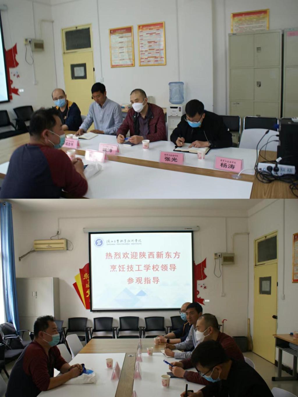 4月26日上午,西安新东方技工学校升学部负责人孙鹏来我院洽谈校企合作。商贸与流通学院党总支副书记侯涛,学院副院长张光、学工办主任成志平、连锁教研室主任张庆同志在崇文北楼二楼会议室与来访嘉宾进行了交流座谈。