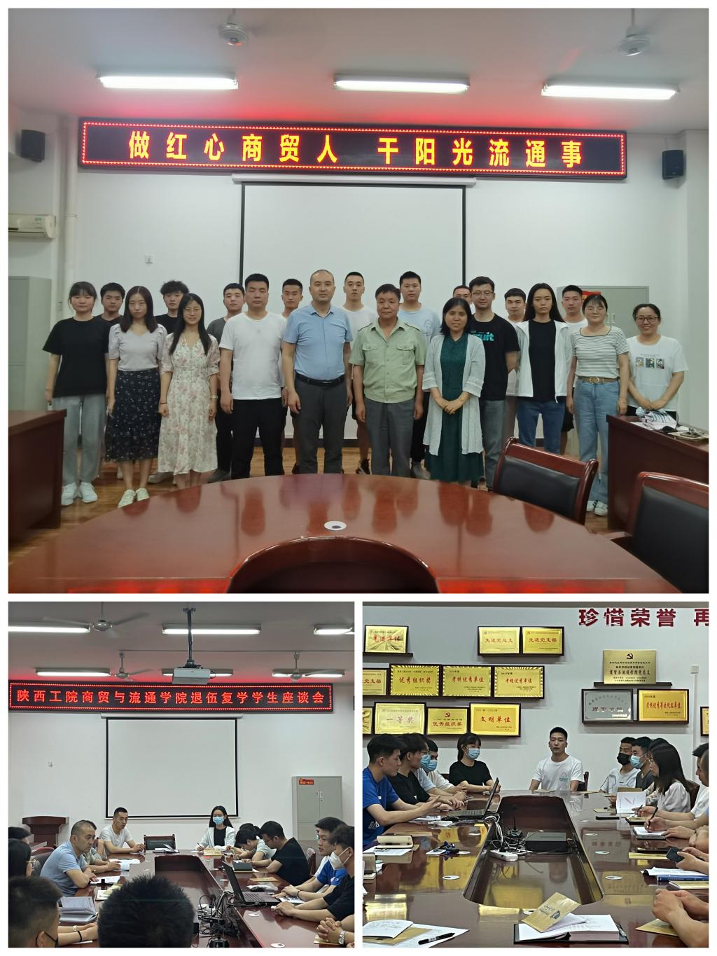 5月24日,商贸与流通学院学院在崇文楼501会议室召开退役复学学生座谈会,商贸与流通学院党总支副书记侯涛,兵心强国社指导老师赵俊英、退役复学学生及所在班班主任参加座谈。