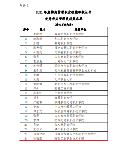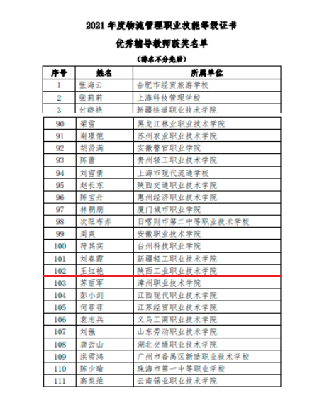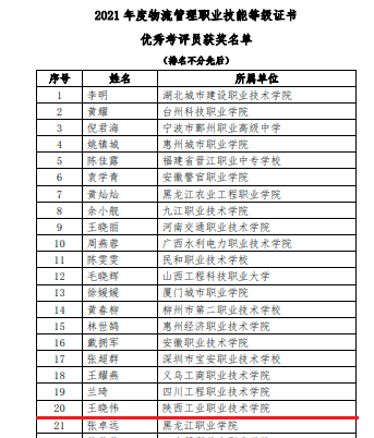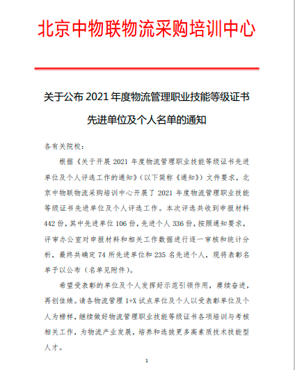 6月16日,北京中物联物流采购培训中心发布“2021 年度物流管理职业技能等级证书先进单位及个人名单”的通知,我校荣获模范考核站点,王红艳老师被评为优秀辅导教师、徐丽蕊老师被评为优秀考务管理员,王晓伟老师被评为优秀考评员。