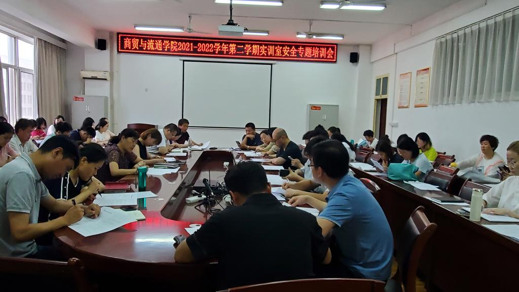 6月22日下午,商贸与流通学院在崇文主楼5楼会议室召开了2021-2022学年第二学期实训室安全专题培训会。会议由张光副院长主持,全体教职工参会。