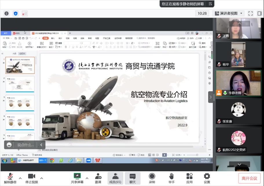 为贯彻学院办学理念,实现专业人才培养目标。9月27日晚上,航空物流管理教研室通过线上视频会议为2022级航空物流管理专业新生进行了专业宣讲。航空物流管理教研室所有教师出席了本次宣讲会。宣讲会由航空物流管理教研室主任王霄老师主持、专业带头人李静老师主讲。