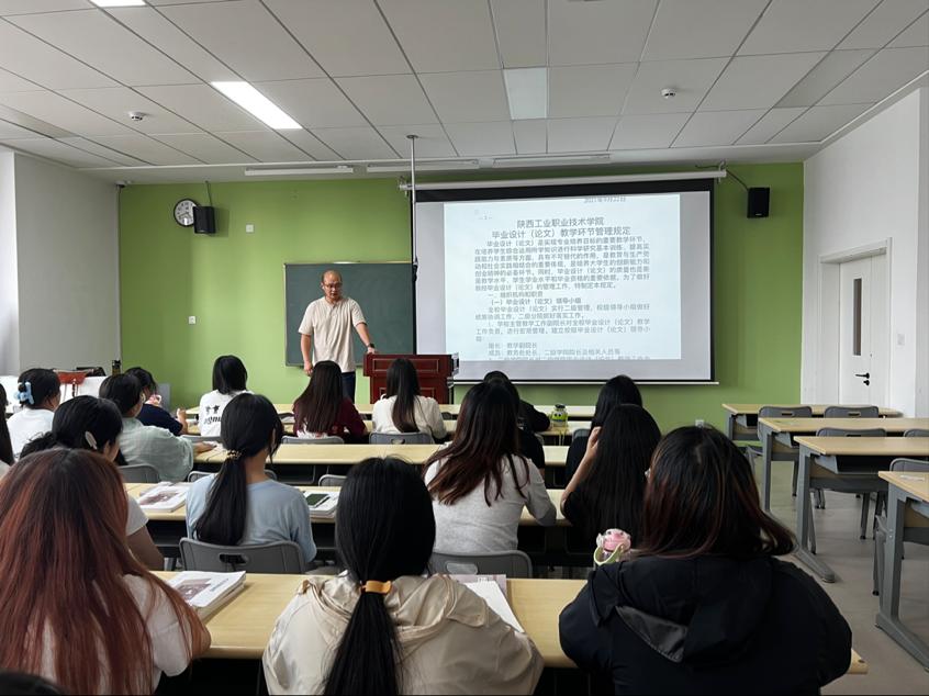 会上,教研室主任张庆对《陕西工业职业技术学院毕业设计(论文)教学环节管理规定》以及《陕西工业职业技术学院毕业论文(设计)格式要求》进行了详细讲解,帮助同学们了解毕业论文的各项规范和流程。专业带头人晋淑惠则对论文的时间节点、选题要求、写作规范等重要事项进行了重点说明,并提醒同学们要严格按照时间安排完成毕业论文的各个环节。