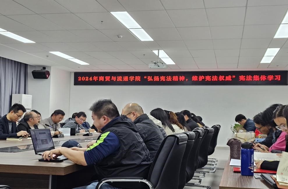 为深入学习贯彻党的二十大、二十届三中全会精神和习近平法治思想,大力弘扬宪法精神,让全体教职工对宪法知于心、守于行,确保宪法精神在教育教学中得到贯彻和体现。12月9日,商贸与流通学院组织开展“弘扬宪法精神,维护宪法权威”宪法集体教育学习会,学院全体教职工参会。