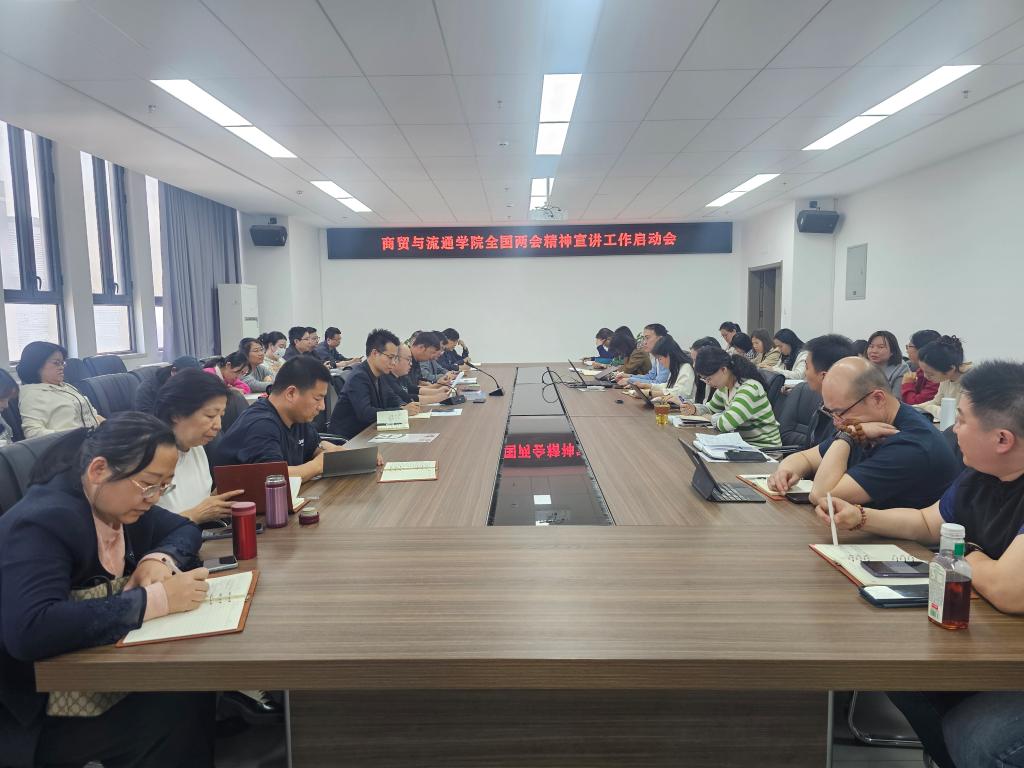 为深入学习贯彻全国两会精神,引导商贸学院广大教职工把思想和行动统一到两会决策部署上来,4月7日下午,商贸与流通学院在崇理楼B604会议室召开商贸学院全国两会精神宣讲工作启动会。全院教职工参加会议,会议由学院党总支副书记蒋鹏同志主持。