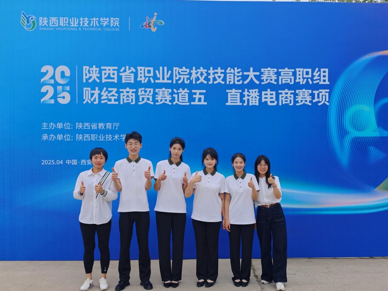 2025年4月24-25日,2025年陕西省职业院校技能大赛(高职组)“直播电商”赛项在陕西职业技术学院成功举办。此次大赛吸引了全省众多高职院校的积极参与,共27支代表队展开激烈角逐。经过两天的紧张比拼,商贸与流通学院杨欣、张晶老师指导的学生吴佳龙、张童童、杨柏玉、赵丹阳团队脱颖而出,荣获小组第一名的优异成绩。