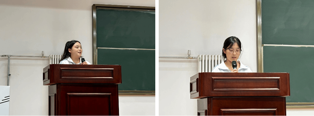 在校生代表——物流2303班王迎春同学和电商2306班夏亮亮同学以亲身经历分享了大学生活的实践与成长心得,生动诠释了如何书写充实精彩的校园篇章,同时也勉励2025级学子持续勤勉笃行,夯实专业根基与社会担当。