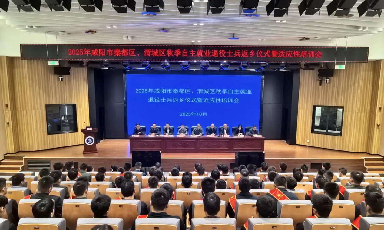 10月15日,由我校承办的2025年咸阳市(秦都区、渭城区)秋季自主就业退役士兵返乡仪式暨适应性培训开班典礼在经开校区顺利举行。咸阳市退役军人事务局副局长程清志,市退役军人事务局就业创业科科长张瑾,秦都区退役军人事务局局长张少伟、副局长孙况、退役军人服务中心主任尹向宏,渭城区退役军人事务局局长沈刚、副局长李军;我校副校长刘清,继续教育与培训学院院长闫军,以及相关业务负责同志及2025年秋季自主就业退役士兵150余人参加了开班仪式,仪式由尹向宏主持。